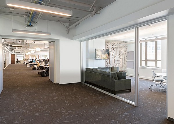 辦公室裝修單位嚴禁將增設的隔離墻封頂至天花或頂部,每一個增設的隔離間必須至少配備一個獨立煙感和一個噴淋。每50平方米至少必須設置一個煙感和一個噴淋,不足50平方米的面積按50平方米計算。