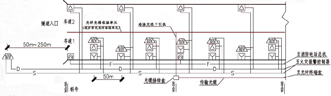 圖2. 道路隧道火災自動報警系統平面示意圖