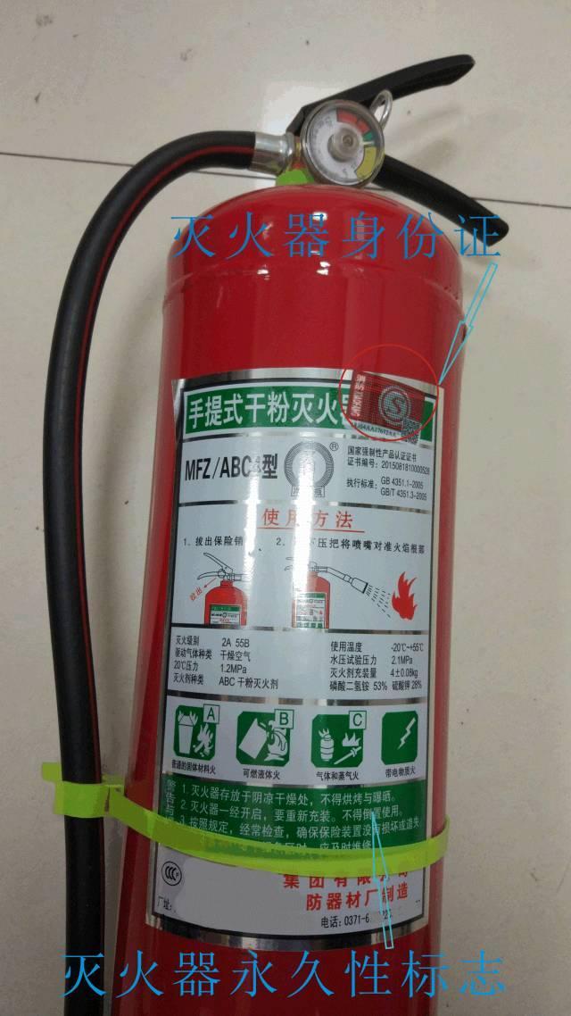 1、干粉滅火器瓶體法定報廢年限為10年:可通過壓力表上出廠日期或瓶體有無身份證判定滅火器瓶體出廠日期(自2008年1月1日起,防火門、滅火器、消防應急燈三類產品全面實行消防產品身份證制度)(如下圖);