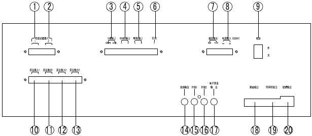 ⑦遙控輸出:與功率放大器遙控端子相連。用于應急廣播時強行啟動功率放大器。