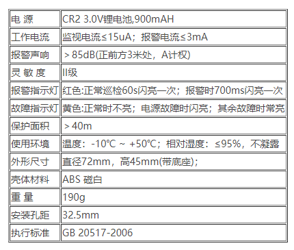 四.JTY-GF-DF90獨立式感煙火災探測報警器技術參數